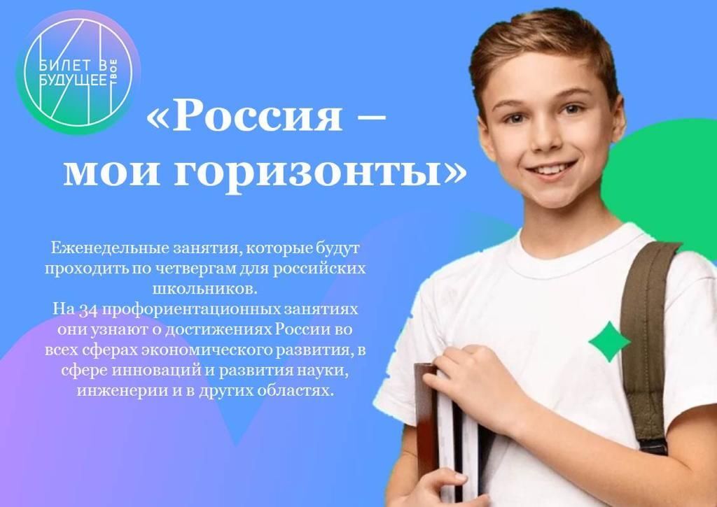 Цикл занятий по профориентации получил название «Россия — мои горизонты». В 2025/2026 учебном году курс состоит из 34 уроков, которые будут проходить каждый четверг у учеников 6–11 классов. Узнать расписание, темы и содержание занятий можно на сайте проекта «Билет в будущее».